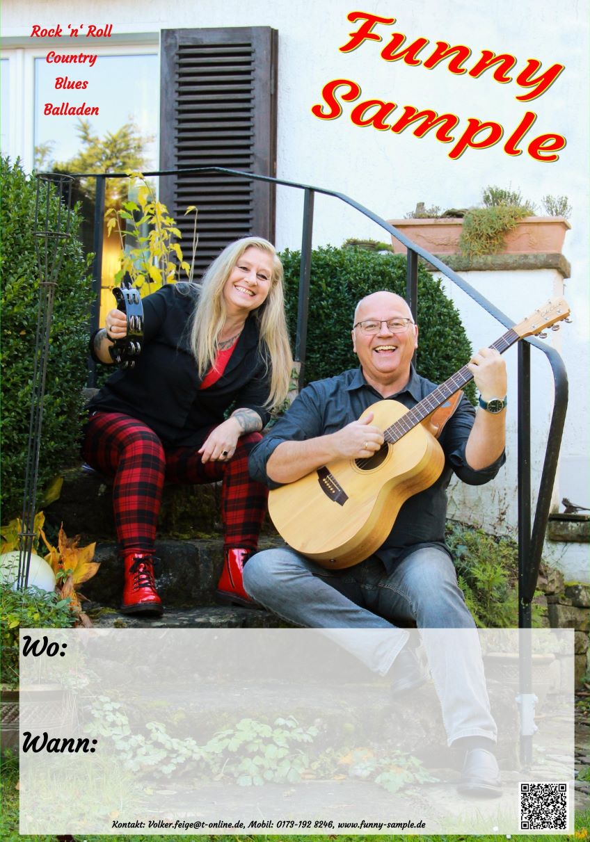 Funny Sample ist ein Akustikduo, das Euch mit handgemachter Musik aus sieben Jahrzehnten – von den „Animals bis Volbeat“ und von „Country bis Rock’n Roll“ – unterhält.
